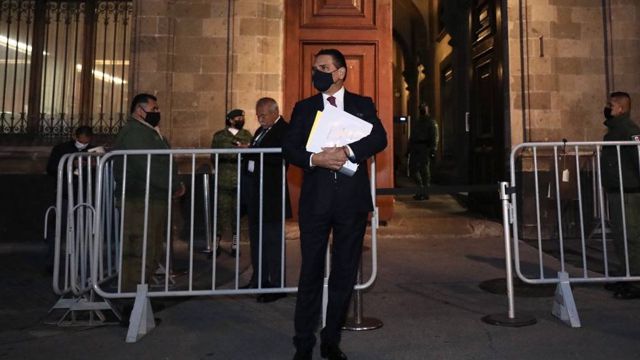 MORELIA, MICH. [Quadratín].- Afuera de Palacio de Gobierno aguarda el gobernador, Silvano Aureoles, para presentar las pruebas que le solicitara el presidente, Andrés Manuel López Obrador, tras sus señalamientos a Morena como “narcopartido que regresará pasado violento a Michoacán”.