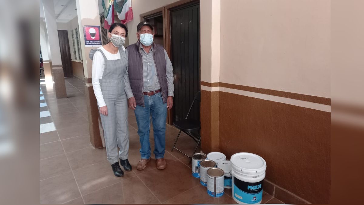 Lo anterior fue expresado por la presidente municipal de Tingüindín Glenda Mendoza Cruz al hacer entrega de material al jefe de tenencia de la comunidad de San Ángel, para el remozamiento y pintura de la plaza principal de esta localidad.