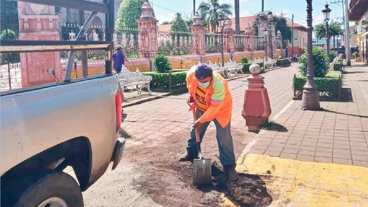 TINGÜINDÍN, MICH.- A través del Departamento de Servicios Públicos, el gobierno municipal de Tingüindín que preside la alcaldesa Glenda Mendoza Cruz lleva a cabo trabajos de rehabilitación de espacios públicos y mantenimiento de la infraestructura vial para la mejora de la imagen urbana en el municipio.