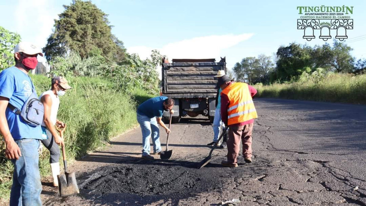 TINGÜINDÍN, MICH.- El Ayuntamiento de Tingüindín que preside la alcaldesa Glenda Mendoza Cruz continua con los trabajos de bacheo en diferentes puntos del municipio, priorizando e maneras especial el tramo carretero Los Reyes-Jacona ante la demanda de la ciudadanía que día con día transita por esta rúa.