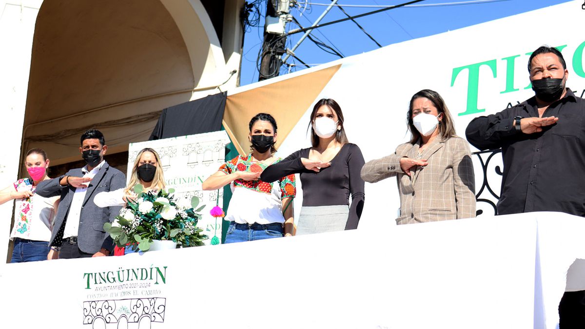TINGÜINDÍN, MICH.- La presidente municipal de Tingüindín Glenda Mendoza Cruz acompañada de regidores, funcionarios y directores de área encabezaron este sábado pasado la conmemoración del 111 aniversario de la Resolución Mexicana, evento que contó con la participación también de personal docente y alumnos de los centros escolares de los diferentes niveles educativos de la cabecera municipal.