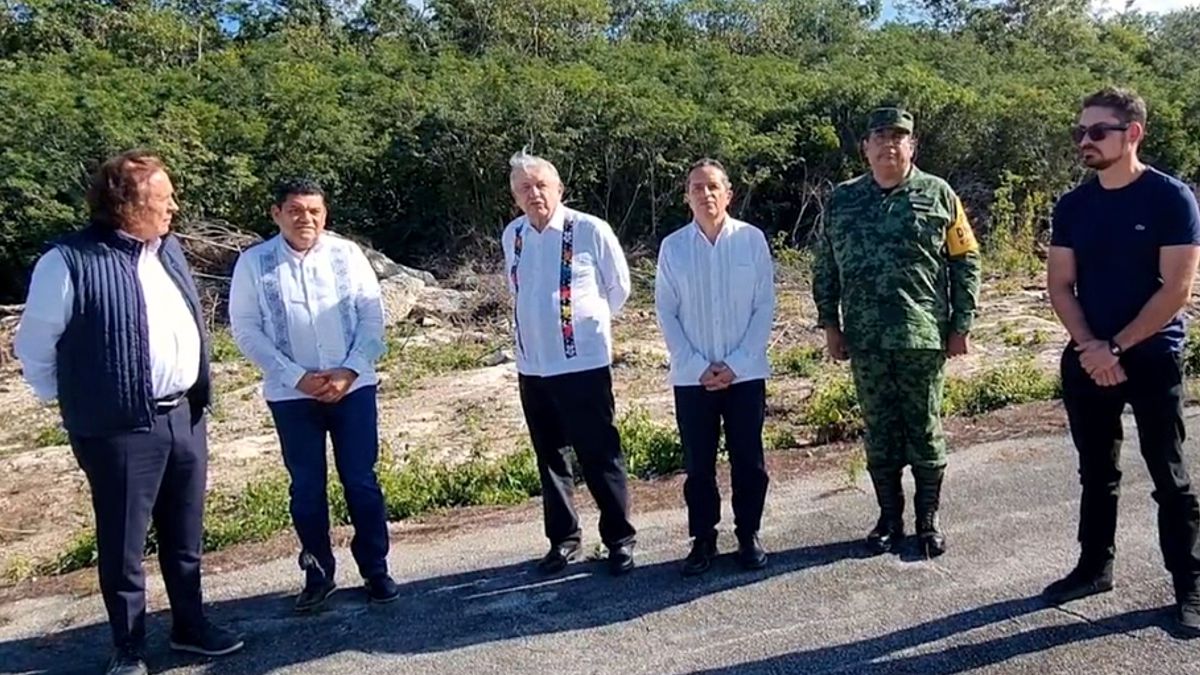 Acompañado por el gobernador del estado de Quintana Roo, Carlos Joaquín; el secretario de Desarrollo Agrario, Territorial y Urbano, Román Meyer; el titular de Fonatur, Javier May, y el subsecretario de la Defensa Nacional, Agustín Radilla, el presidente López Obrador remarcó la importancia de promover el turismo y generar empleo, sin afectar el medio ambiente.