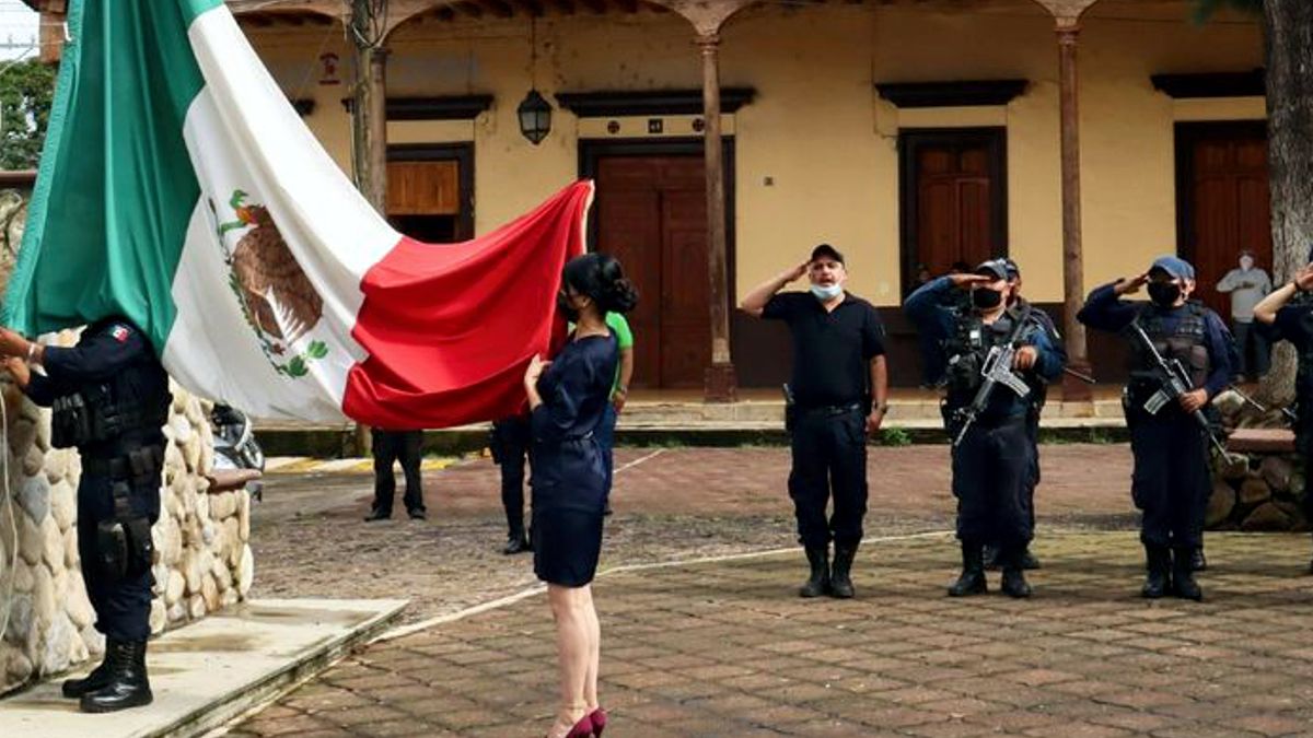 TINGÜINDÍN, MICH.- Con la presencia de alumnos y personal docente de las diferentes instituciones educativas de la cabecera municipal, personal del Ayuntamiento de Tingüindín encabezados por la alcaldesa Glenda Mendoza Cruz conmemoraron el 201 aniversario del Día de la Bandera Mexicana.