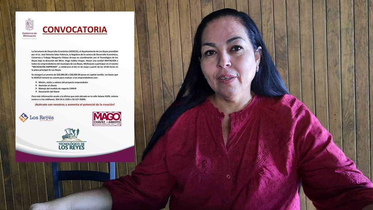 LOS REYES, MICH.- La regidora Margarita Chávez Arroyo, integrante de la comisión de Desarrollo Económico, Comercio y Trabaja de Los Reyes dio a conocer la llegada del programa “Michoacán Emprende”, programa de la Secretaria de Desarrollo Económico (Sedeco) del Estado de Michoacán y que esta siendo impulsado por el Ayuntamiento de Los Reyes y el Tecnológico Nacional de México Campus Los Reyes.