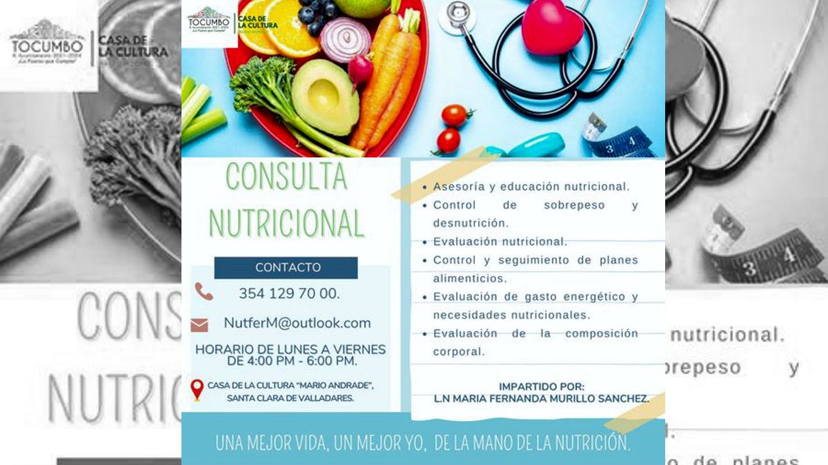 TOCUMBO, MICH.- Con el fin de promover estilos de vida saludables a través de la nutrición, el ejercicio, la prevención y atención de enfermedades relacionadas con la alimentación, el Sistema para el Desarrollo Integral de la Familia (DIF) Tocumbo ofrece Consulta Nutricional, informo Xochiltl Macarena López Retana directora del organismo.
