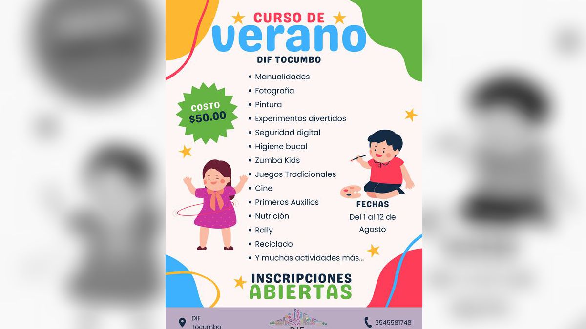 TOCUMBO, MICH.- A partir del próximo primero de agosto y hasta el día 12 de ese mismo mes, los niños y niñas de la cabecera municipal de Tocumbo, podrán disfrutar de mucha diversión y entretenimiento en los Cursos de Verano que ofrece el Sistema para el Desarrollo Integral de la Familia de este municipio.