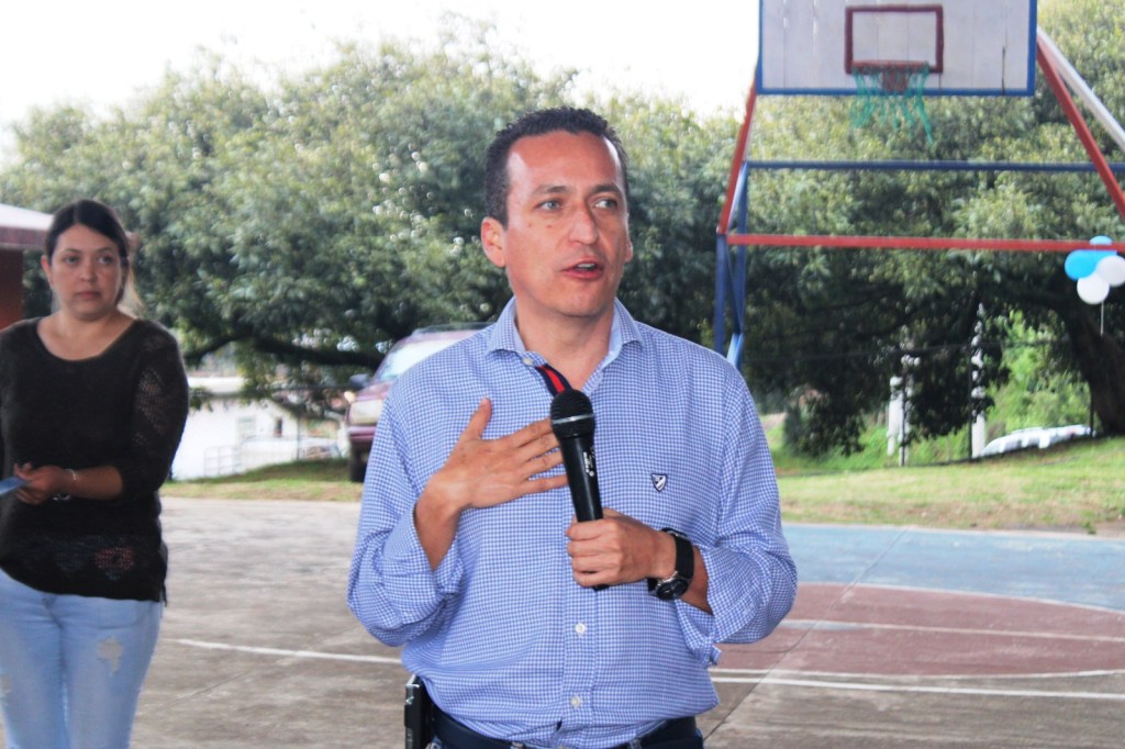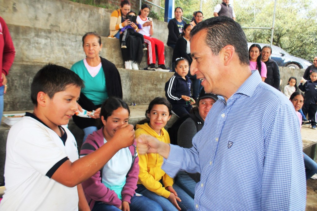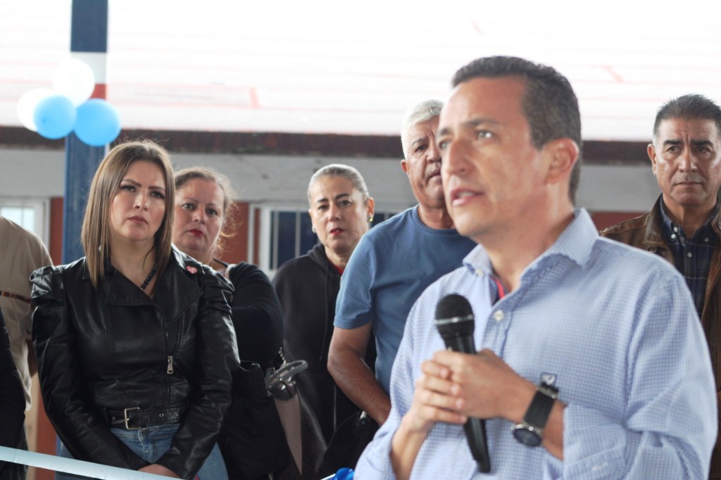 El alcalde, acompañado por su esposa y presidenta del Sistema Municipal para el Desarrollo Integral de la Familia (DIF), Angélica Patricia Álvarez Pizano; por el síndico Gudelia Oseguera Ceja, regidores y funcionarios del ayuntamiento, fue recibido por un nutrido grupo de vecinos, integrantes del Comité de Obra y alumnos, encabezados por el encargado del orden de la localidad y el director del plantel, Alfonso Rincón Herrera y Juan Manuel Camilo Pedro, respectivamente.