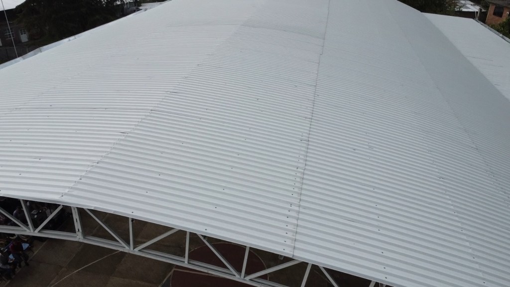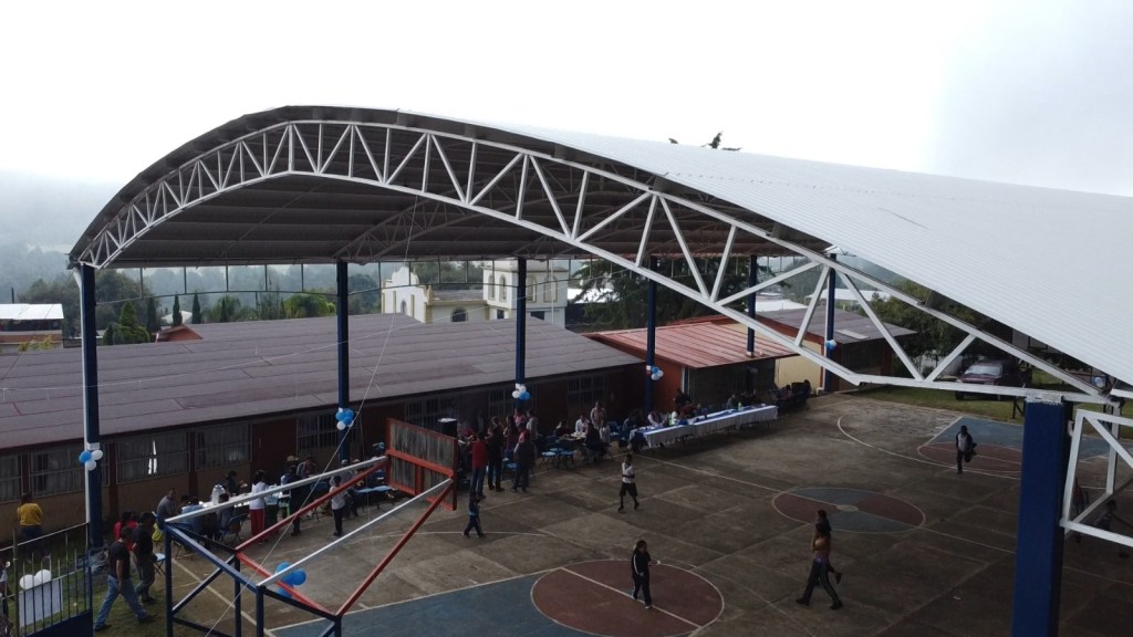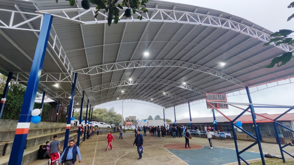 Según se explicó, la obra consistió en la cimentación, construcción de estructura metálica, armaduras, colocación, de lámina y canales, pintura, limpieza e instalación de sistema de alumbrado, todo sobre una superficie de 704 metros cuadrados, incluyendo tanto la cancha como un área de gradas a un costado de la misma.