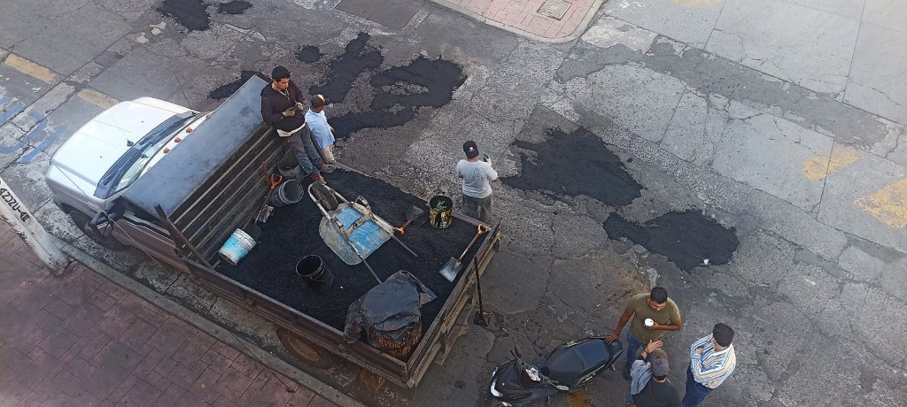 Los Reyes, Mich.- Por indicaciones del Presidente Municipal, Toño Salas, personal de Obras Públicas realiza una intensiva jornada de bacheo en diferentes calles del municipio, con el fin de mejorar la movilidad y seguridad de automovilistas y peatones.