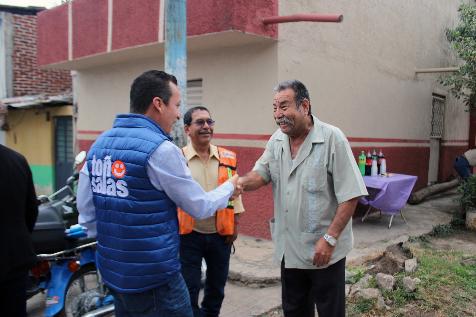 LOS REYES, MICH.- En atención a una demanda que los vecinos habían venido planteando a las administraciones pasadas sin respuesta alguna, el alcalde José Antonio Salas valencia encabezó hoy el banderazo de arranque a los trabajos de rehabilitación de las redes de agua potable y drenaje de la calle Miguel Silva de la colonia Santa Rosa.