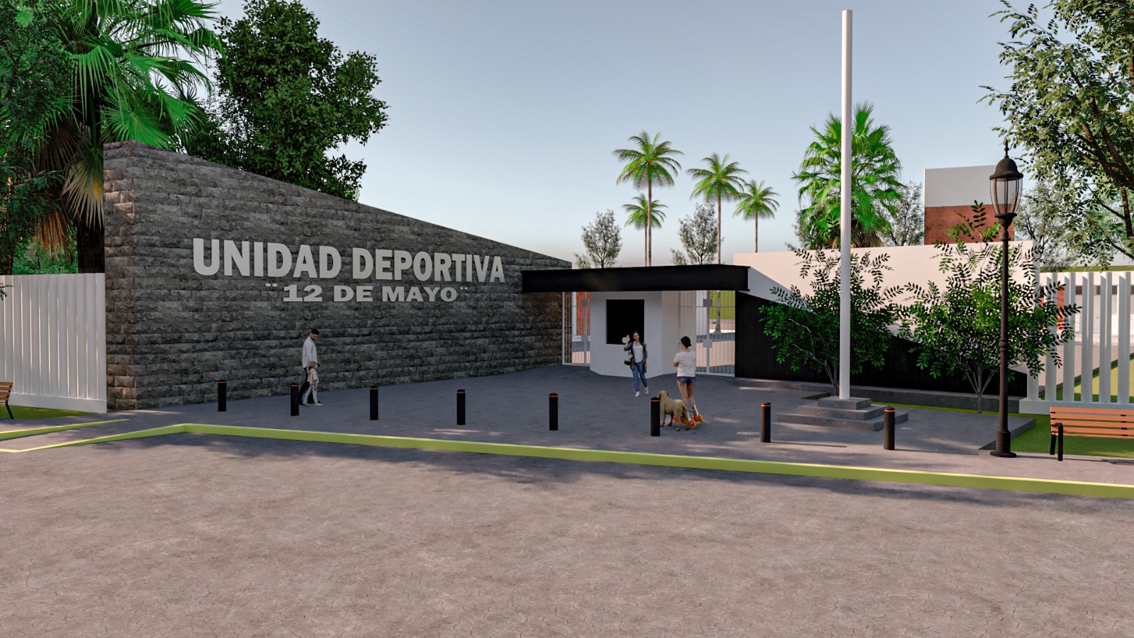 Asimismo, se tienen contemplados el cambio de la malla ciclónica perimetral por una cerca de perfiles tubulares, el techado de una de las canchas de volibol, la rehabilitación de la pista de atletismo (pintura en guarniciones y compactación de base) con su propio sistema de iluminación, colocación de luminarias y bancas en el jardín de acceso y la rehabilitación del sistema de alumbrado de toda la Unidad Deportiva.