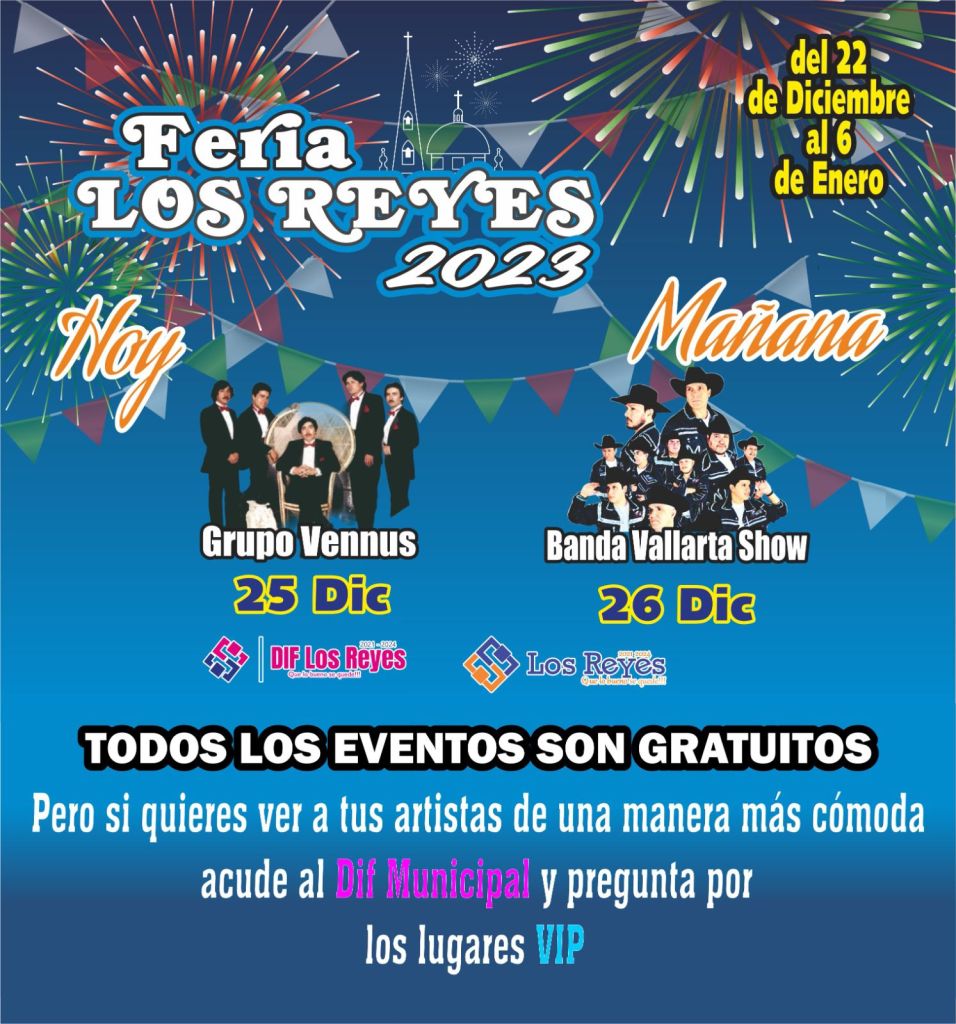 Destacada, Estado, Los Reyes, Municipios Luego del receso por la celebración de la nochebuena, hoy lunes 25 de diciembre se reanuda la cartelera artística de la Feria de #LosReyes, con l presentación del Grupo Vennus,, desde Aguilillla, Michoacán. ¡No falten! #QueLoBuenoSeQuede Comparte esto: Haz clic para compartir en Facebook (Se abre en una ventana nueva) Facebook Haz clic para compartir en X (Se abre en una ventana nueva) X Haz clic para compartir en WhatsApp (Se abre en una ventana nueva) WhatsApp Me gusta Cargando... Relacionado
