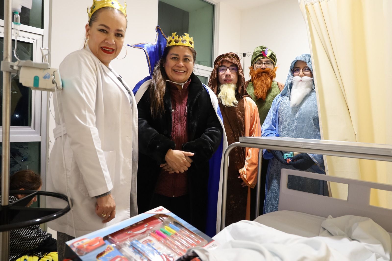 Es así que la titular de la SSM, Belinda Iturbide Díaz, acompañada de médicos, directivos, enfermeras y de los tres Reyes Magos recorrieron la noche de ayer los pasillos del hospital donde se hizo la magia.