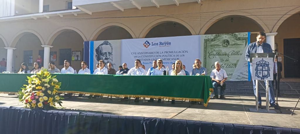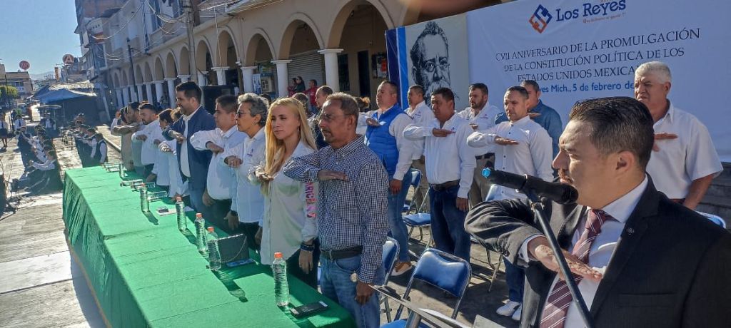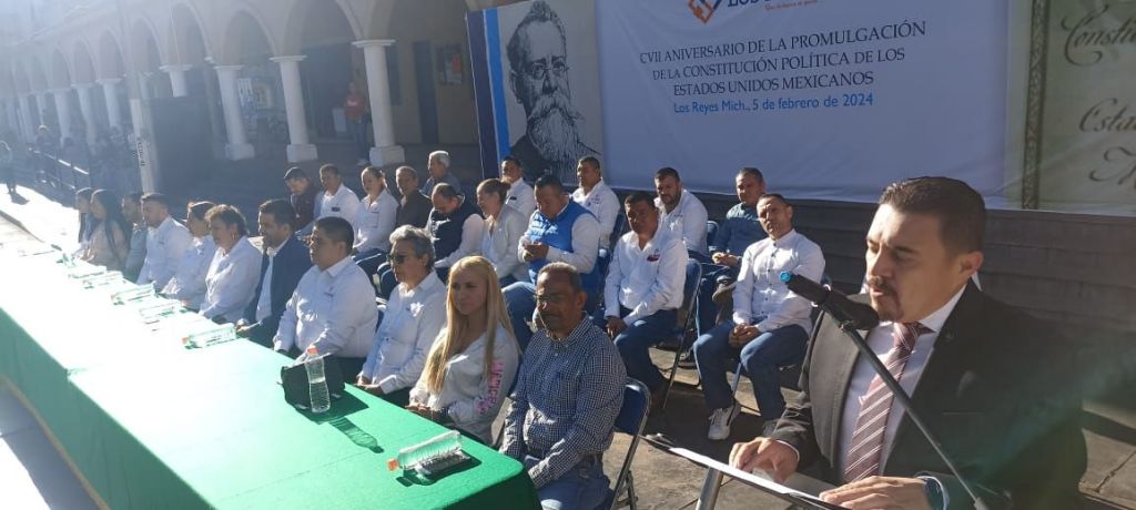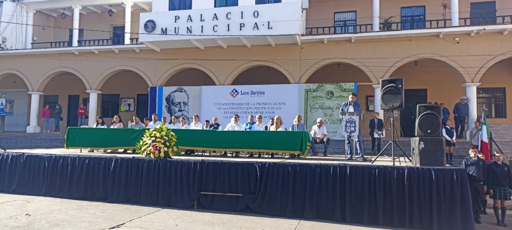 LOS REYES, MICH.- “Hoy nos reunimos para conmemorar con orgullo el aniversario de la Constitución de la República; 107 años de vida que demuestran que lo bueno llega para quedarse. Y digo esto con convicción, porque la Constitución de 1917 representa la visión de resguardar todas las formas de pensar, buscando que los mexicanos caminemos juntos hacia un mismo horizonte”, señaló el secretario municipal, Ricardo Enrique Torres Barragán.