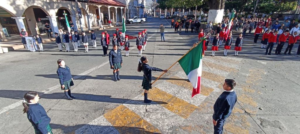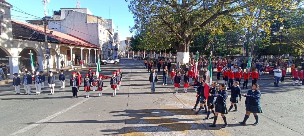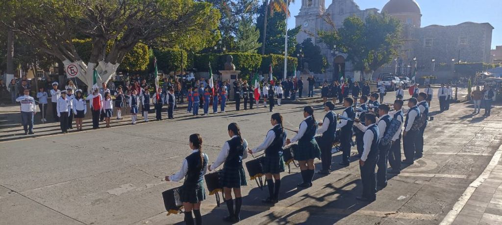 Bajo la organización del Colegio Nacional de Educación Profesional Técnica (Conalep), plantel Los Reyes-Santa Clara, el acto tuvo lugar en punto de las 9:00 horas en los estrados de la presidencia municipal, a donde se dieron cita contingentes de diferentes escuelas de nivel básico, medio superior y superior de esta ciudad.