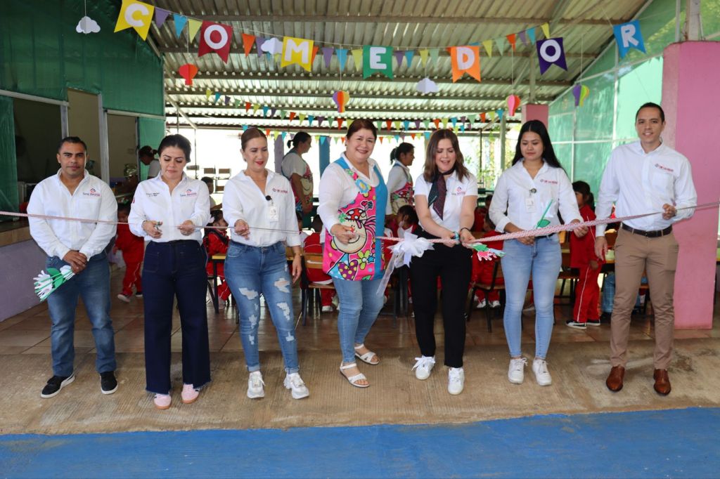 ATAPAN, MPIO. DE LOS REYES, MICH.- La presidenta del Sistema Municipal para el Desarrollo Integral de la Familia (DIF), Angélica Patricia Álvarez Pizano, inauguró y equipó, esta mañana, el desayunador del preescolar “Ma. Concepción Morales Vargas” de esta comunidad, además de entregar los trabajos de impermeabilización del plantel y de pintura de la cancha de usos múltiples, la cual, como se recordará, fue techada el año pasado.