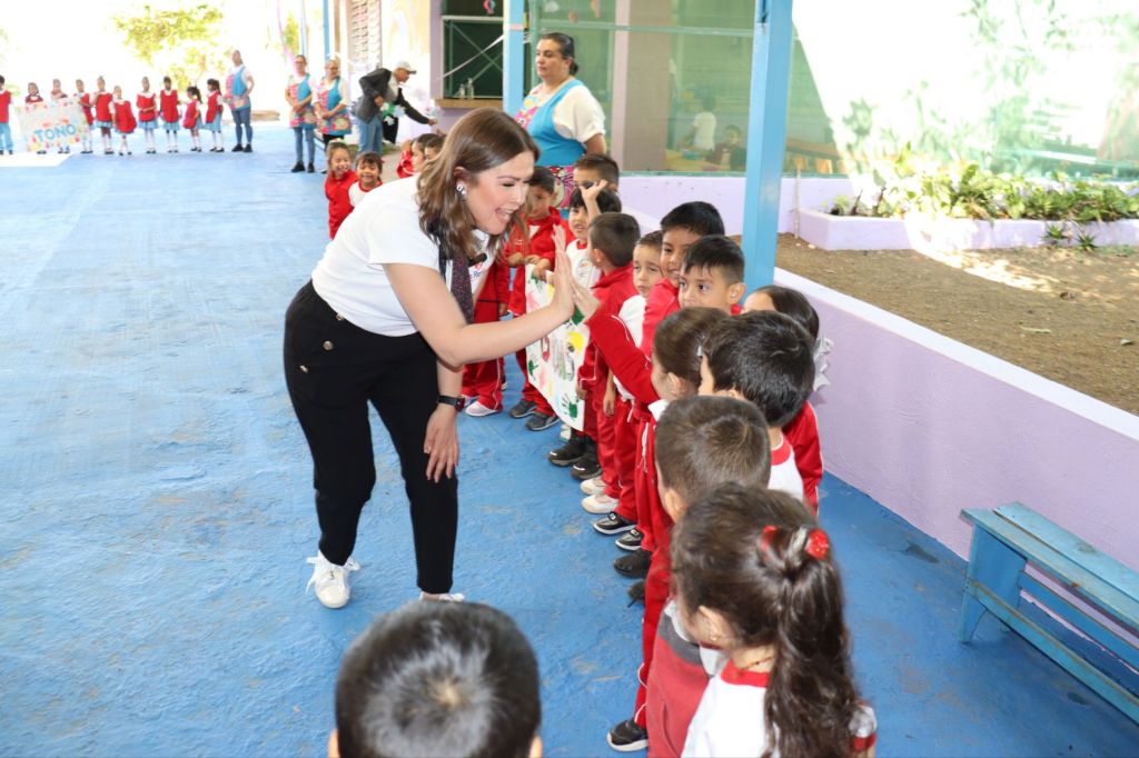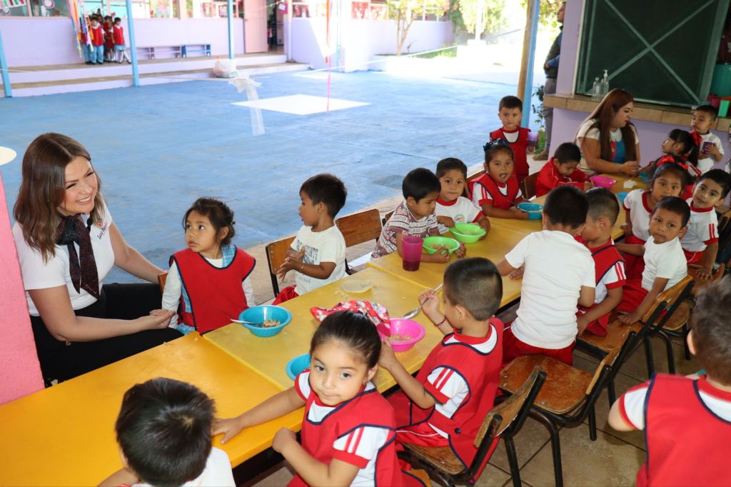 En medio de emotivas muestras de cariño y agradecimiento, la titular del organismo de asistencia familiar, acompañada por varios de sus colaboradores, fue recibida por alumnos y personal encabezado por la directora María de Jesús Oseguera Montaño, quien agradeció todo el apoyo recibido del DIF y del ayuntamiento que preside el alcalde José Antonio Salas, gracias al cual se cuenta con una cancha techada, una escuela impermeabilizada y ahora un desayunador.