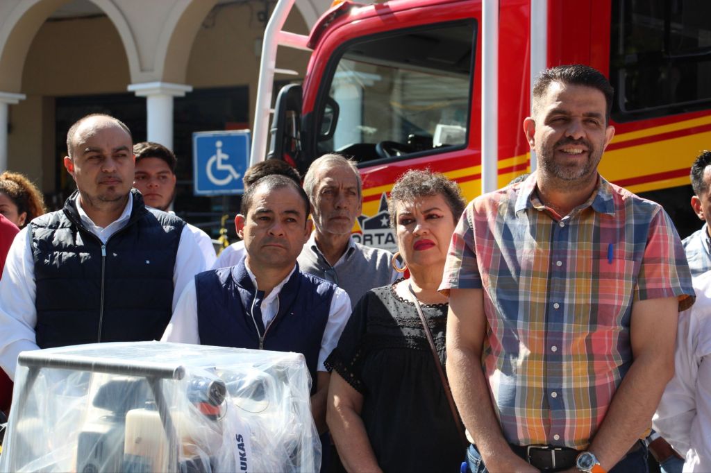 Al agradecer este apoyo sin precedentes, Gálvez Chávez explicó que se trata de un camión de ataque rápido, cuatro por cuatro, con un depósito de 3 mil litros y una bomba con salidas de 1, 1.5 y 2 pulgadas; 12 equipos autónomos para respiración en incendios estructurales y un equipo hidráulico compuesto por separador, cortadora, pistón hidráulico y motor, los cuales son de vital importancia para extraer personas prensadas de vehículos accidentados.