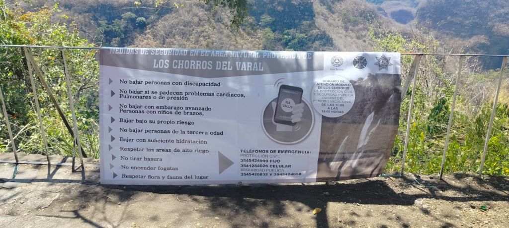 En el caso de Los Chorros del Varal, además de la vigilancia constante, se colocaron lonas de advertencia para que los visitantes estuvieran conscientes de del riesgo y medidas básicas que implica bajar a la zona de las cascadas.que el descenso a la zona de las