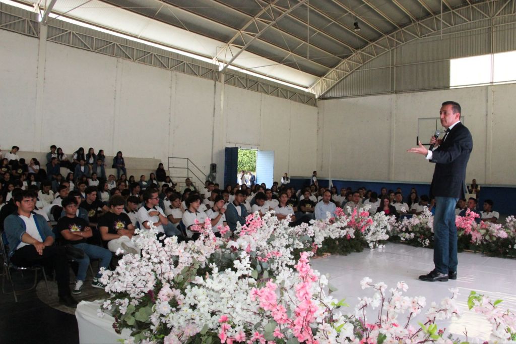 “El éxito no es fácil, se construye y se mantiene cada día con tesón, trabajo y dedicación, y yo estoy convencido, al estar aquí en mi querida escuela, que de aquí veremos muchos egresados triunfadores no solo en la política sino en todos los ámbitos. Sueñen en grande, el éxito lo tienen enfrente, sean lo que quieran ser, pero busquen ser siempre los mejores”, dijo para concluir su mensaje y recibir un reconocimiento por parte de la dirección de la institución.
