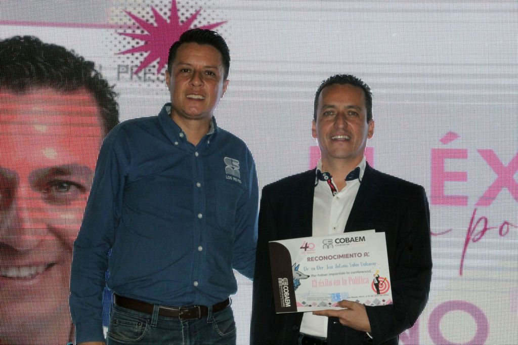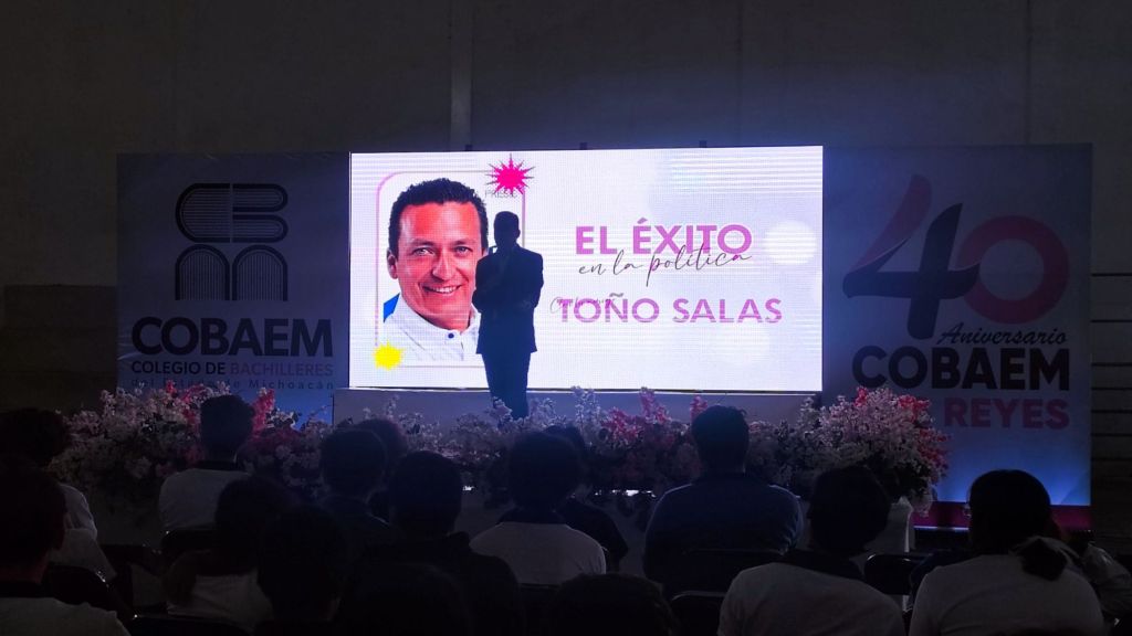 LOS REYES, MICH.- Con un llamado a no desistir en la lucha por alcanzar sus sueños, por difíciles que estos parezcan, el alcalde con licencia y actual candidato a diputado local por el noveno distrito, José Antonio Salas Valencia, dictó la conferencia titulada “El éxito en la política”, a la comunidad estudiantil del Colegio de Bachilleres (Cobaem), plantel Los Reyes.
