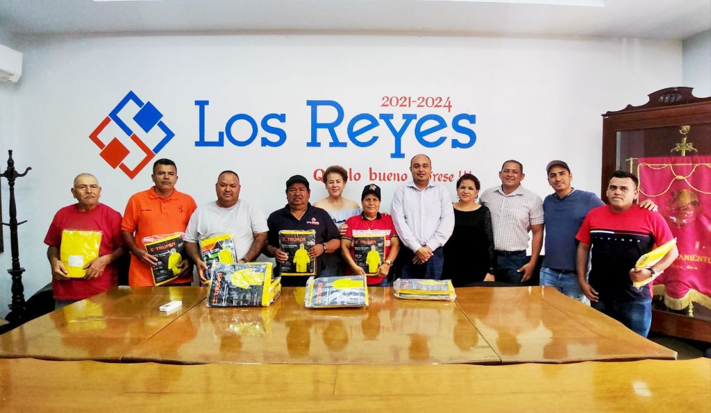 LOS REYES, MICH..- Convencido de la importancia de estos aditamentos para que el personal de campo del ayuntamiento se proteja de las inclemencias del tiempo, el alcalde Francisco Javier Oregel Martínez encabezó este martes, la entrega de 60 impermeables a igual número de trabajadores sindicalizados del gobierno municipal de Los Reyes.