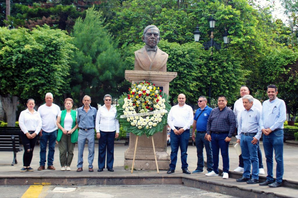 Si bien no hubo acto cívico por el periodo vacacional de las instituciones educativas, integrantes del cuerpo de cabildo de Los Reyes y titulares de área, conmemoraron el aniversario del fallecimiento de uno de los personajes históricos más reconocidos de México por su labor como político, como gobernador de su natal Oaxaca y primordialmente como presidente de México