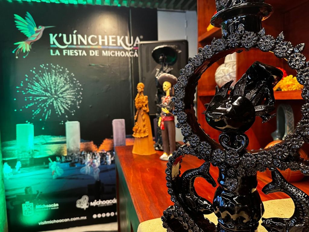 En representación del gobernador Alfredo Ramírez Bedolla, Monroy García agradeció la promoción que se dará a Michoacán durante todo el mes de octubre en Punto México, que se localiza dentro de las instalaciones de la Sectur federal, donde turistas y visitantes nacionales e internacionales podrán enamorarse de las catrinas de Capula, las piezas de cobre de Santa Clara del Cobre o de las piñas de San José de Gracia, entre otras creaciones.