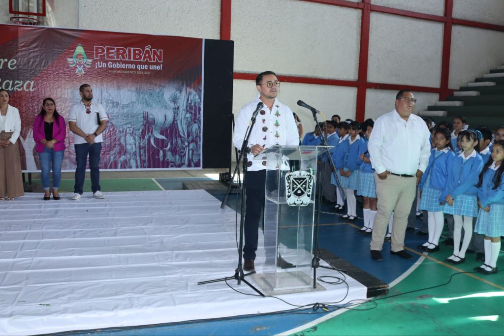 Peribán de Ramos a 12 de octubre del 2024.-El alcalde Martín Escalera Bautista acompañado de miembros de su cabildo como: La secretaria del H. ayuntamiento Mercedes Cervantes Viveros, regidoras Marisol Cartagena, Aracely Calvillo, Guadalupe Avalos, y el regidor Rafael Morales, así como presidenta honoraria el DIF Peribán, Isela Caballero Farfán, encabezaron este acto protocolario para conmemorar el día de la raza donde el alcalde Escalera Bautista dijo “este día es una oportunidad para reflexionar sobre nuestra identidad y gran herencia cultural, porque nuestro país es uno de los más bellos en el mundo, por su gran diversidad. Hoy celebramos la riqueza que surge de la diversidad, reconocemos nuestros errores y aprendemos de nuestra historia para construir un futuro más inclusivo y equitativo”.