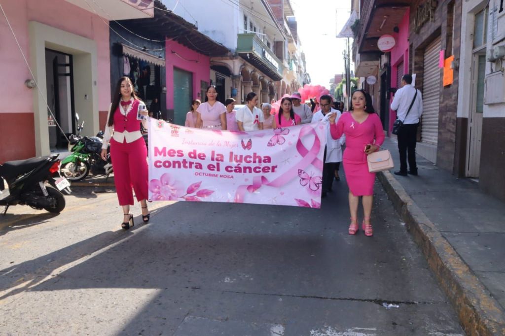 Las participantes en el desfile de concientización del cáncer de mama impulsan a mujeres y hombres a la autoexploración, destacando la importancia de un diagnóstico oportuno para el tratamiento adecuado. “Para luchar contra el cáncer de mama no olvidemos las 3 claves: prevenir, diagnosticar y tratar”.