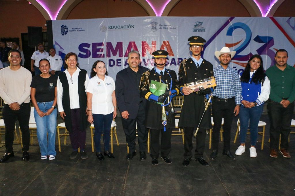 En el marco del aniversario de la fundación del Tecnológico Superior de Los Reyes, se llevó a cabo una exhibición de banda de guerra en la plaza principal del municipio. El evento contó con la presencia del Presidente Municipal, Lic. Humberto Jiménez Solís, quien destacó la importancia de la cultura cívica en la formación de los jóvenes.