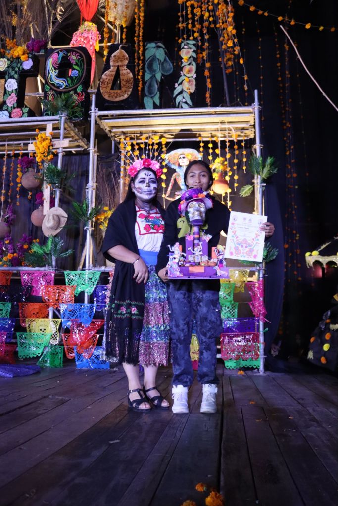 “La muerte es un símbolo de la vida que se materializa en nuestro legado”, así lo manifestó el alcalde Martín Escalera Bautista, honrando a quienes contribuyeron en la construcción de este municipio, ya que el altar, uno de los más grandes y bellos del estado, fue dedicado a la memoria de todos los expresidentes municipales que ya no estan de manera física en este plano terrenal pero que impulsaron el desarrollo de nuestro municipio. También aprovechó para felicitar y reconocer nuevamente el gran talento de Liliana Saraí Caballero Esquivel, alumna del CECyTEM Peribán, quien recibió mención honorífica al Mérito Académico categoría A, en el Premio Michoacano de la Juventud 2024.