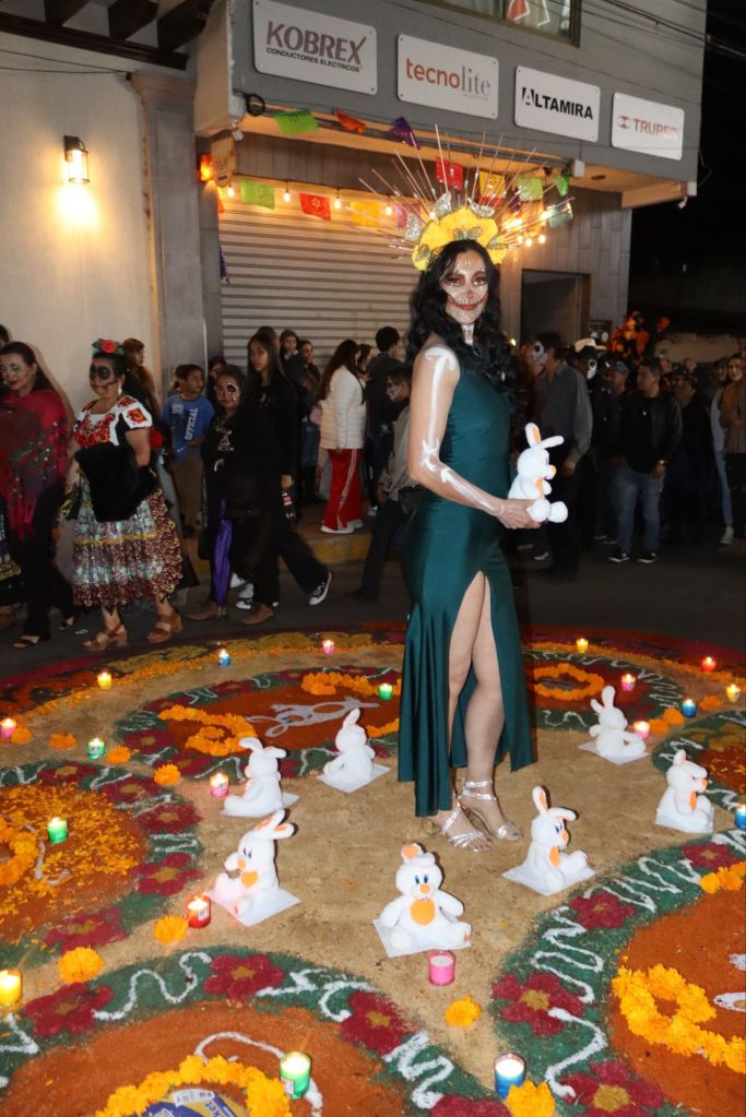 Peribán de Ramos a 05 de noviembre del 2024.- Una gran noche de muertos se vivió en todo el municipio de Peribán. Nuestras tradiciones siguen vivas y nos dan identidad, la muerte no representa una ausencia, sino la presencia de un recuerdo; así lo declaró el alcalde Martín Escalera Bautista, quien junto con todo su equipo del H. Ayuntamiento 2024-2027, brindaron actividades que hicieron de este festival uno de los mejores en todo el estado. Al programa asistió el director del Instituto de la Juventud Michoacana, Lenin López García, quien junto con el H. Ayuntamiento y direcciones municipales recorrieron la calle principal en Peribán, que deleito a miles de visitantes con las muestras artesanales de tapetes conmemorativos de asociaciones civiles y gubernamentales, con los cuales dejaron ver el gran talento y riqueza cultural de la región. Entre velas y aromas de copal, este pasaje dejó maravillados a chicos y grandes.