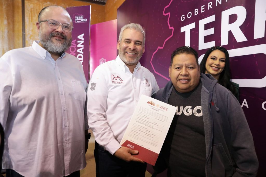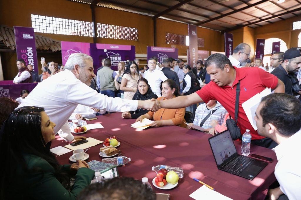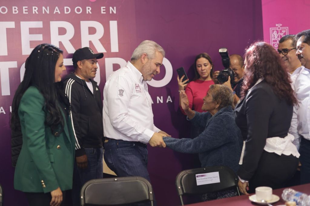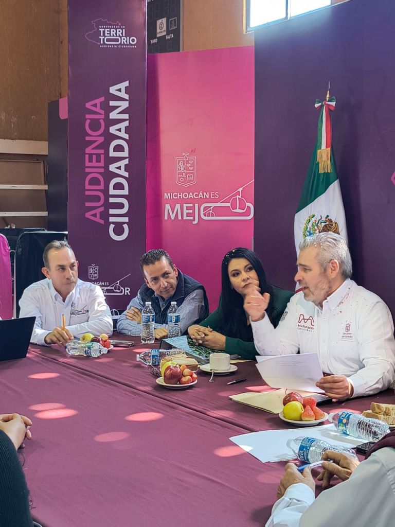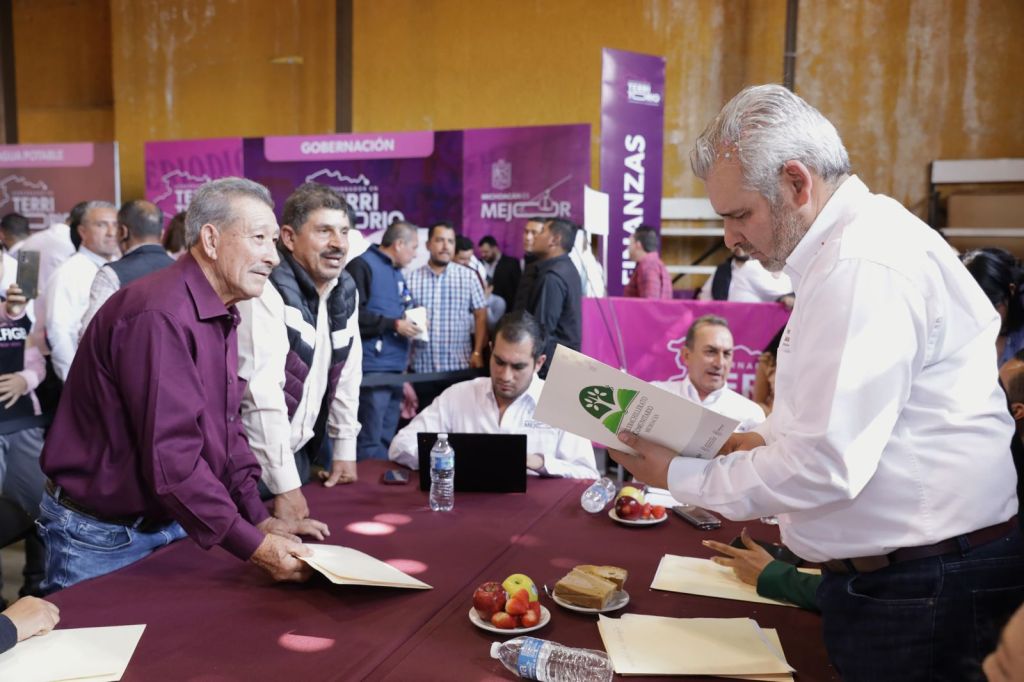 En el pueblo natal del general Francisco J. Múgica, el mandatario recibió y atendió solicitudes ciudadanas para el fortalecimiento de la infraestructura educativa, intervención de caminos, pavimentaciones, manejo sustentable del agua y reforestación.
