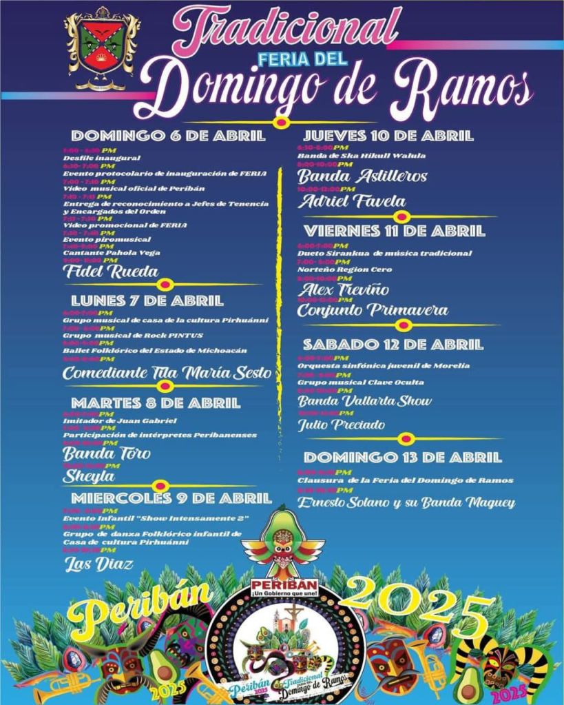 Les dejo el programa cultura y artístico de nuestra tradicional feria del domingo de ramos!! 🥑👌🤩✌️😍😜💜🥑 ESPERO ME LES GUSTE QUE LO HACEMOS CON TODO EL CORAZON!!! #Peribán