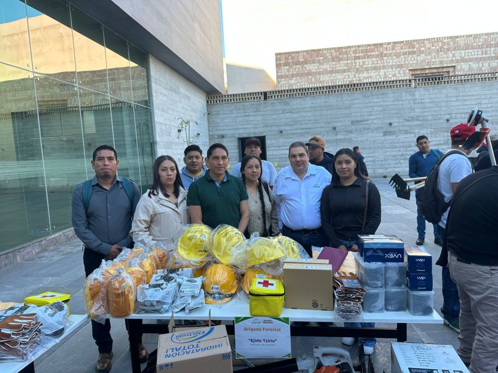 Asimismo, la brigada recibió equipo de protección personal, incluyendo mascarillas, lentes de protección y cartuchos de repuesto, con el fin de garantizar la seguridad de quienes participan en las labores de prevención y control del fuego.