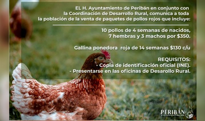 Ofrece el Ayuntamiento de Tocumbo paquetes de gallinas ponedoras