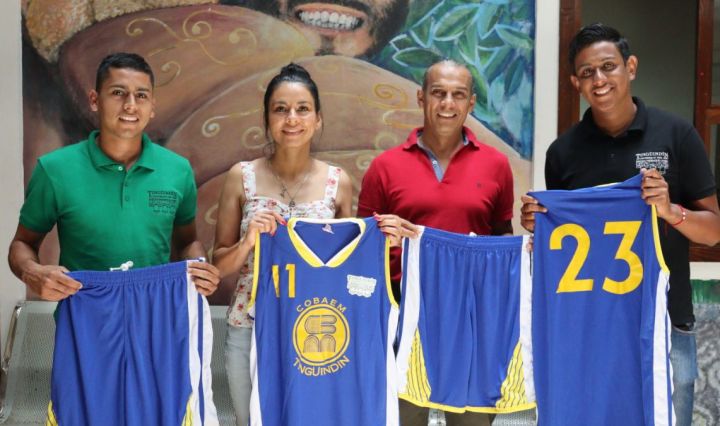 Entrega Glenda Mendoza hizo uniformes al equipo de Basquetbol del Colegio de Bachilleres