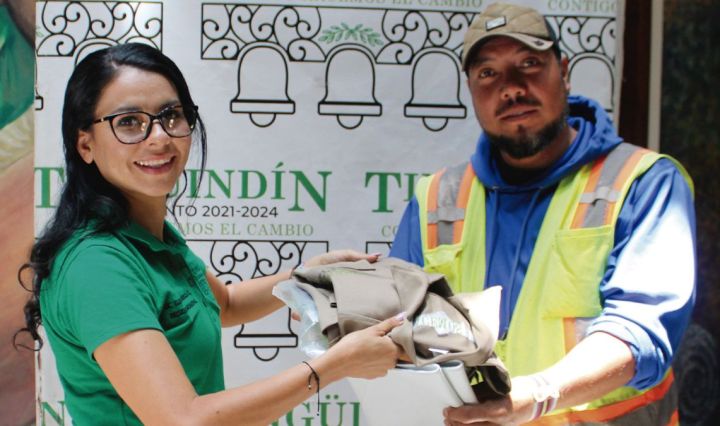 Jorge Aldebarán Gómez Villanueva TINGÜINDÍN, MICH.- Con el objetivo de mejorar sus condiciones de trabajo, la presidente municipal de Tingüindín Glenda Mendoza Cruz entregó en días pasados uniformes nuevos al personal del departamento de Residuos Sólidos del Ayuntamiento en un … Continúa leyendo Entrega Glenda Mendoza uniformes a personal del departamento de Residuos Sólidos